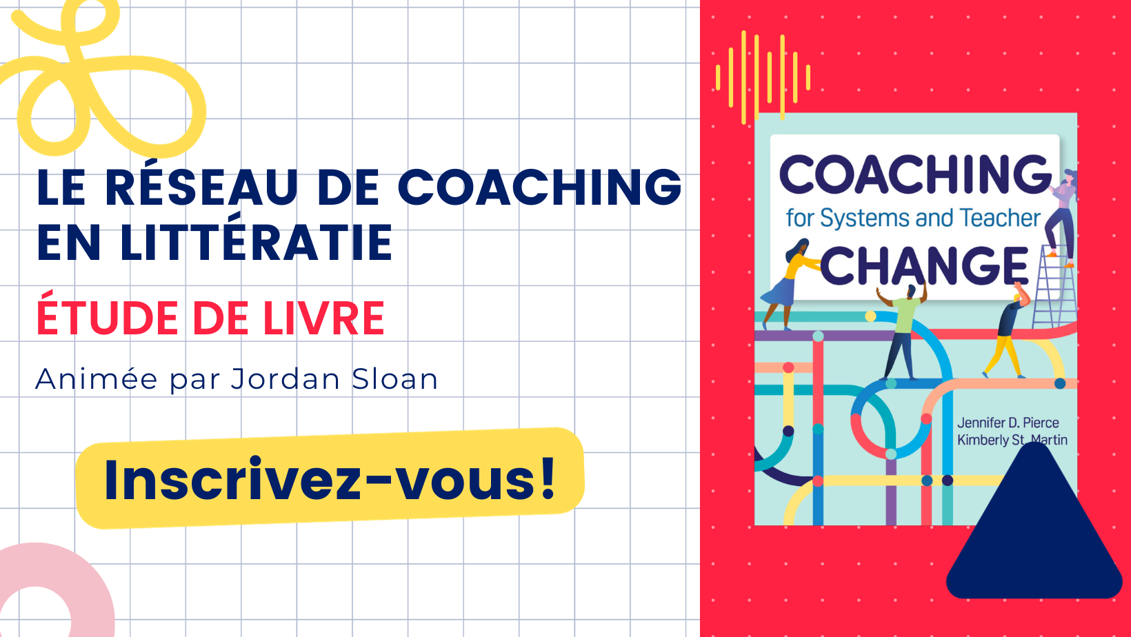 Joignez-vous à Jordan Sloan pour cette Série de ONLit, Le réseau de coaching en littératie. Notre travail commencera avec une étude du livre de Jennifer Pierce et Kimberly St. Martin, Coaching for Systems and Teacher Change. Le coaching entre éducateurs est l’un des meilleurs moyens d’améliorer les résultats de tous les élèves, mais les coachs bénéficient rarement d’une préparation formelle pour maîtriser ce rôle important. Ce guide complet combine des recherches pertinentes avec des conseils pratiques et des ressources pour travailler avec le personnel enseignant de la maternelle à la 12e année.