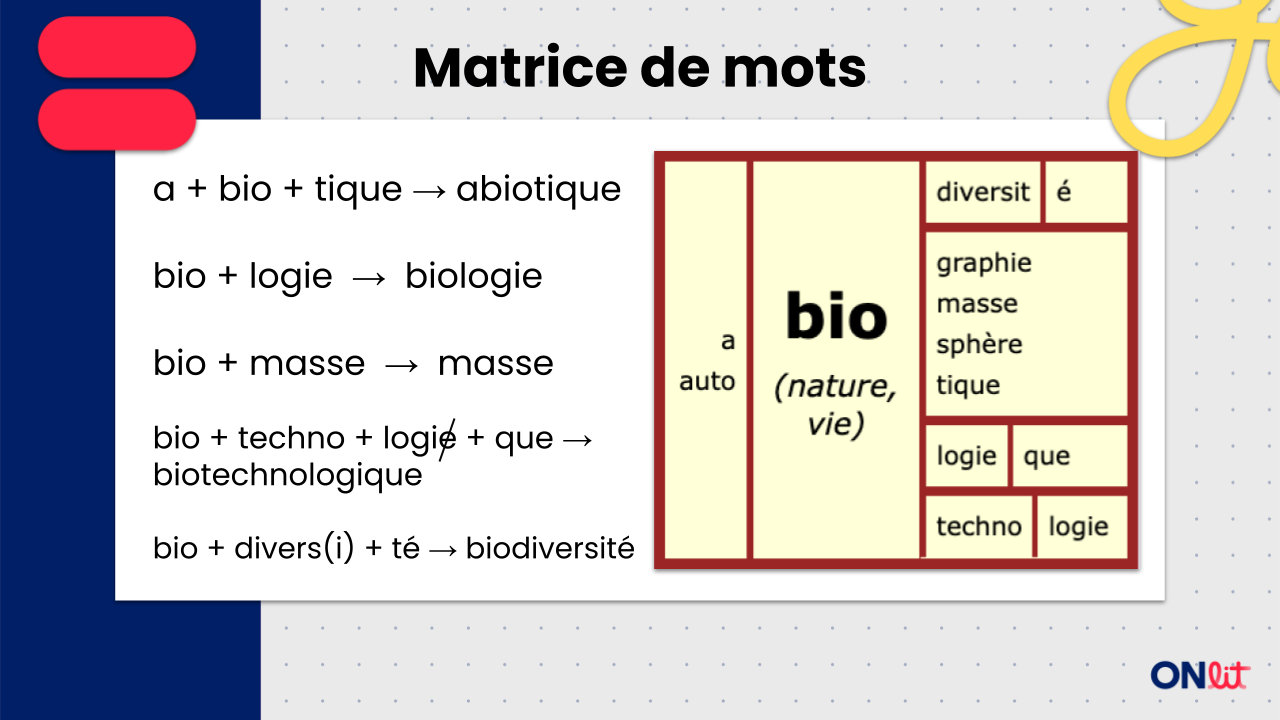 En français, nous utilisons des indices phonémiques (sons) ainsi que des indices morphémiques (sens) pour lire et pour orthographier. Plus nos habiletés à lire des mots à structures syllabiques complexes s’améliorent, plus nous devons nous fier sur des stratégies pour nous aider à décoder les mots, puisque l’orthographe de ces mots devient inconsistante ou contextuelle. C’est alors que la conscience morphologique devient d’importance cruciale. Cette présentation donne un aperçu de la morphologie, de son histoire et de son application à la langue française, des liens avec notre programme-cadre français (2023) et des moyens d’intégrer l’enseignement de la morphologie dans notre quotidien dans toutes les matières.